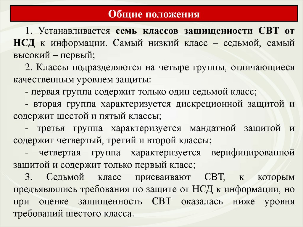 Общие положения1. Устанавливается семь классов защищенности СВТ от