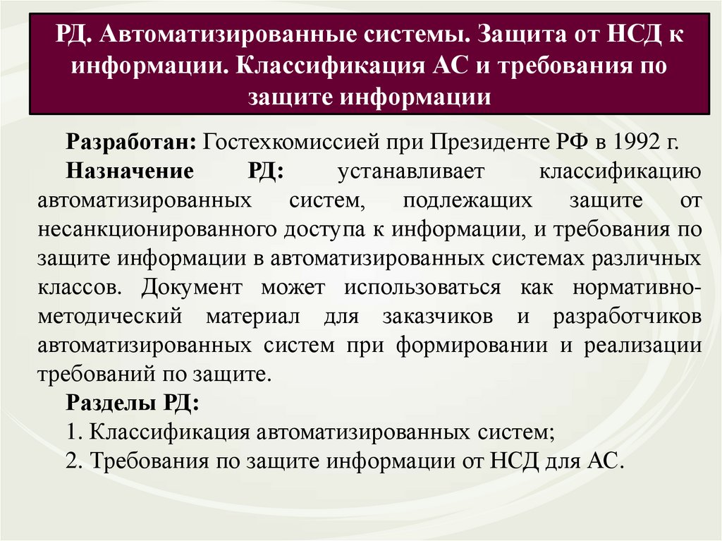 несанкционированного доступа. Гостехкомиссия при Президенте