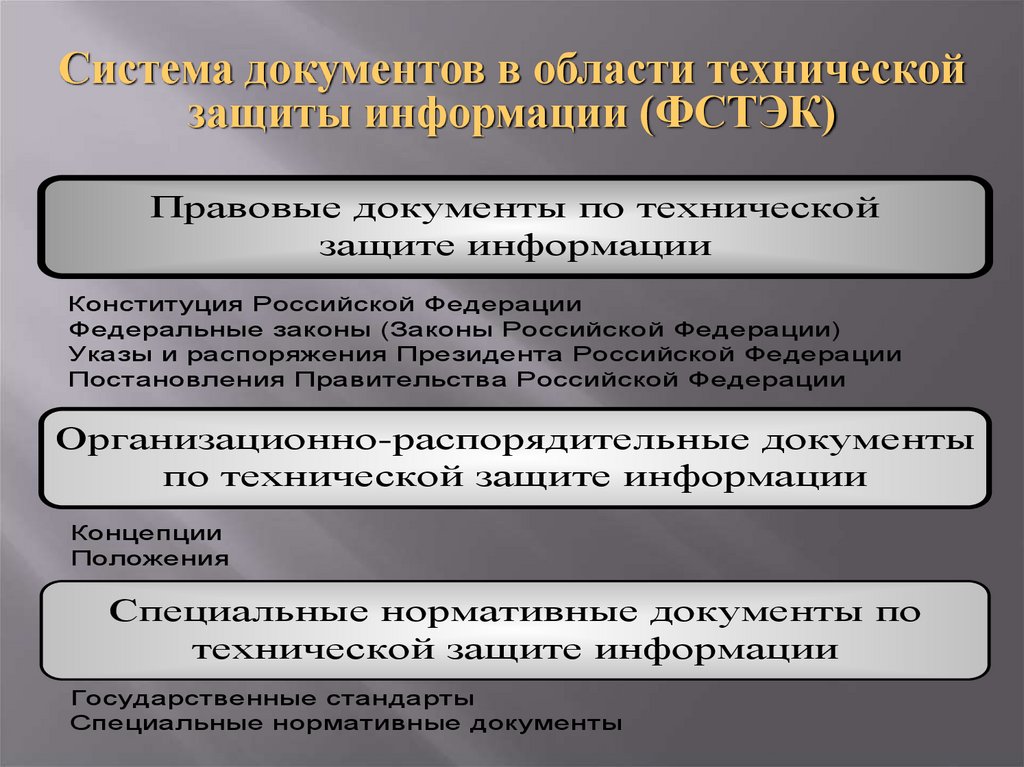 Система документов в области техническойзащиты информации (ФСТЭК)