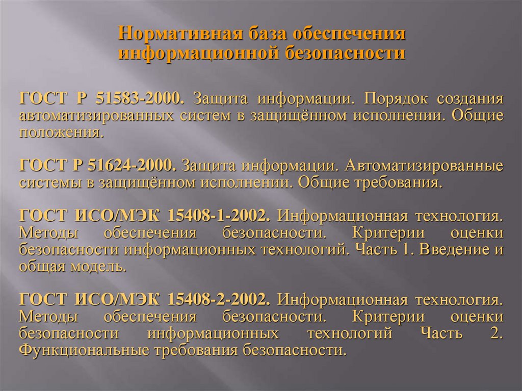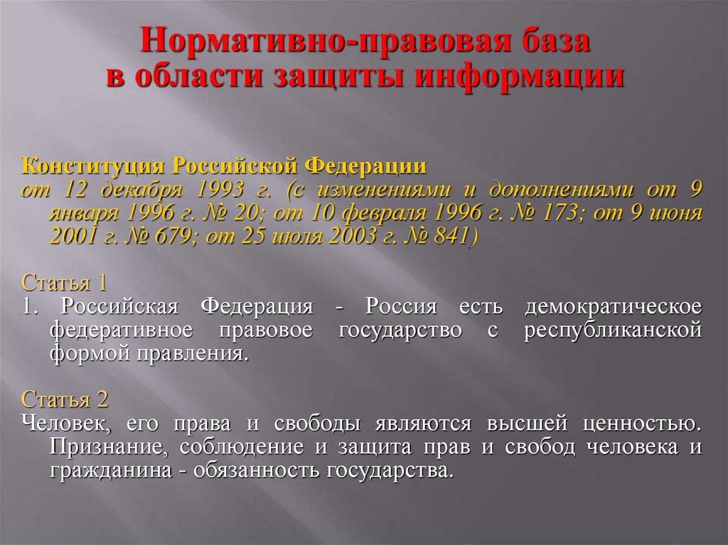 Нормативно-правовая база в области защиты информации. Основные понятия, термины и определения