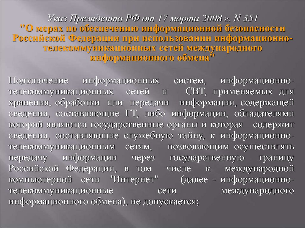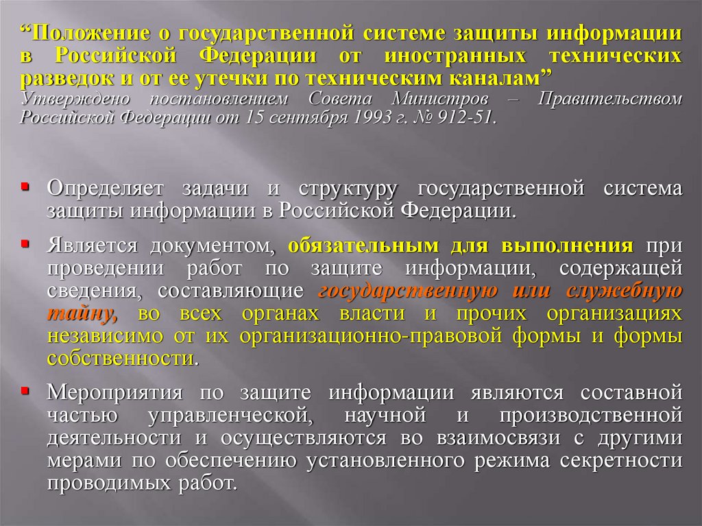 “Положение о государственной системе защиты информациив Российской Федерации от иностранных технических