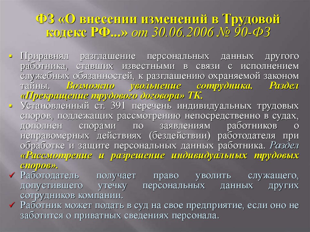 ФЗ «О внесении изменений в Трудовойкодекс РФ...» от 30.06.2006 № 90-ФЗ