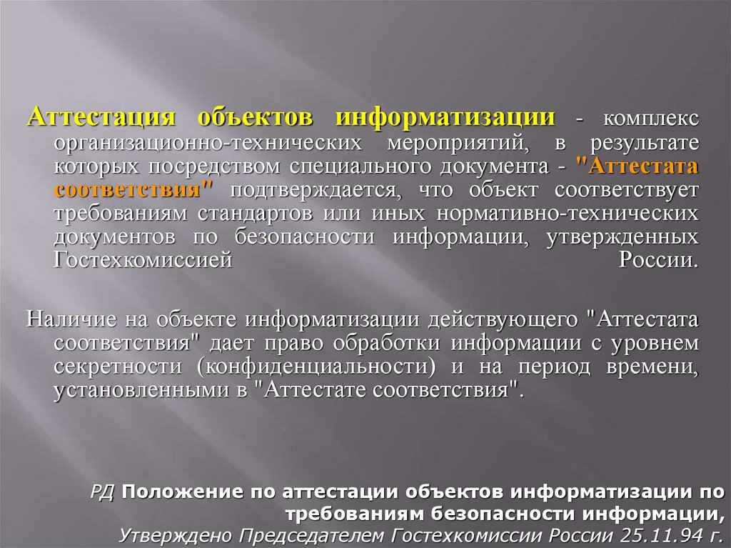 Аттестация объектов информатизации - комплексорганизационно-технических мероприятий, в результате