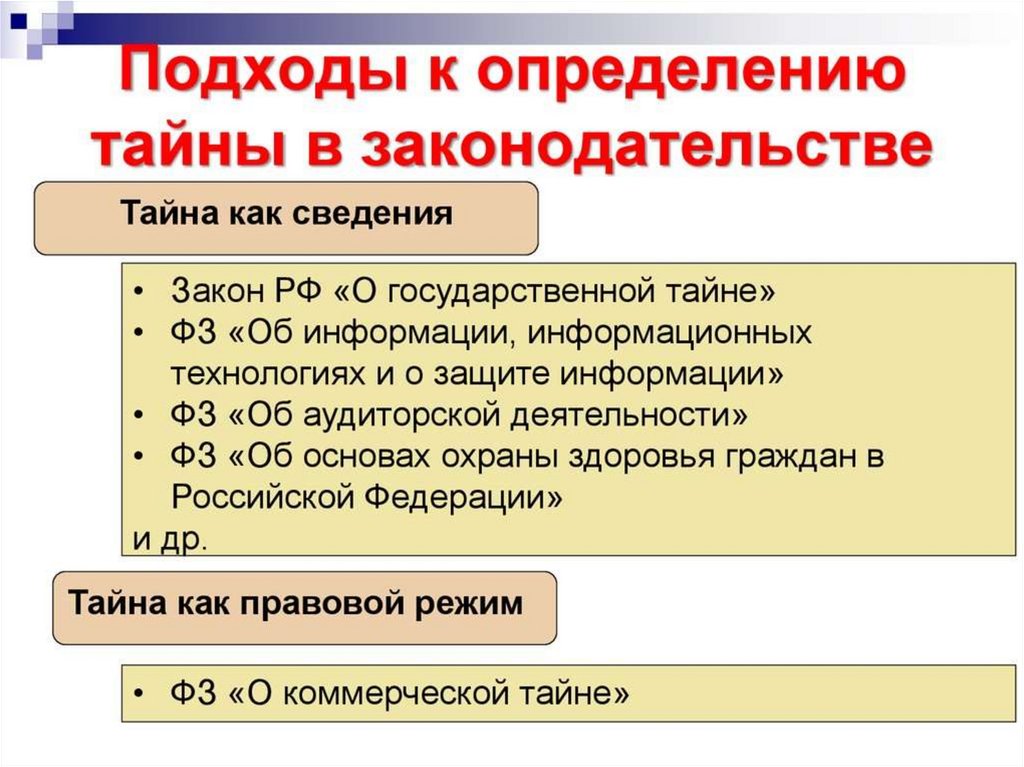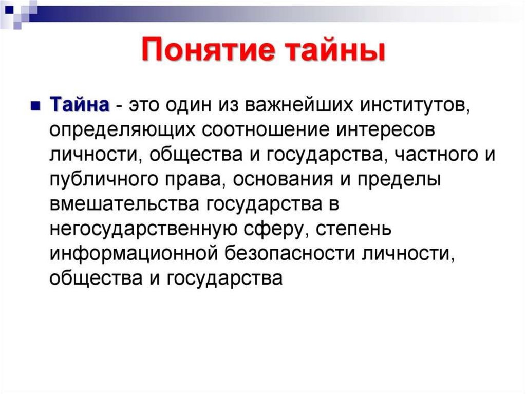 Понятие тайны Правовой режим государственной тайны