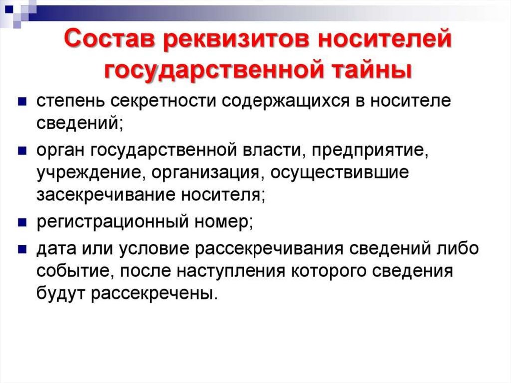 Правовой режим защиты государственной тайны. Лекция №4