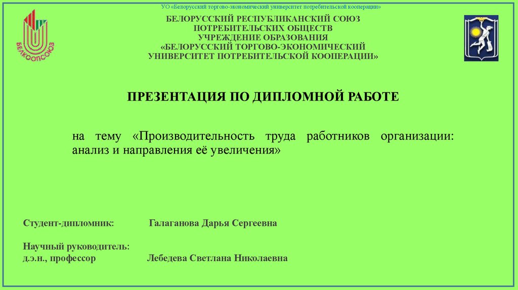 1. Белорусский республиканский союз потребительских обществ Учреждение образования «Белорусский торгово-экономический университет