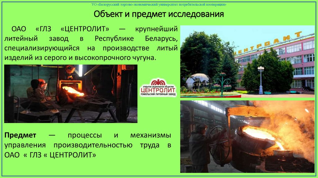 УО «Белорусский торгово-экономический университет потребительской кооперации»Объект и предмет исследования