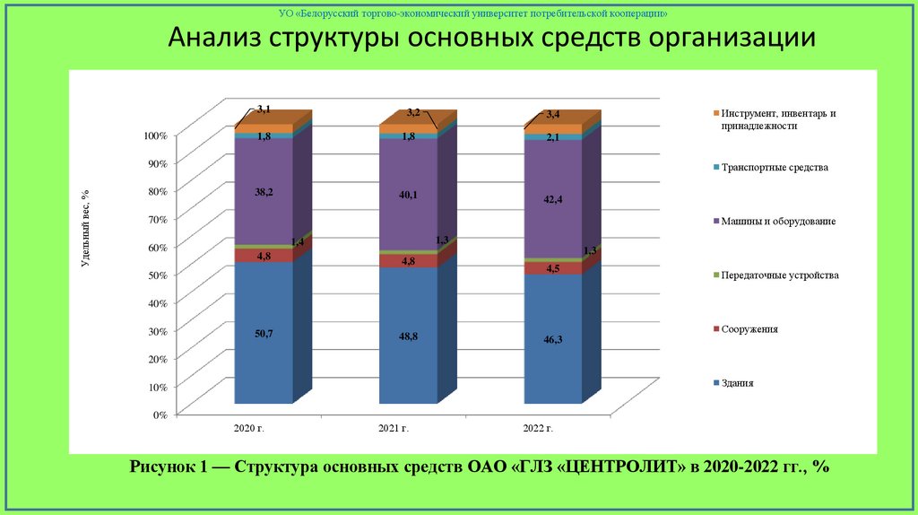 УО «Белорусский торгово-экономический университет потребительской кооперации»Анализ структуры основных средств организации