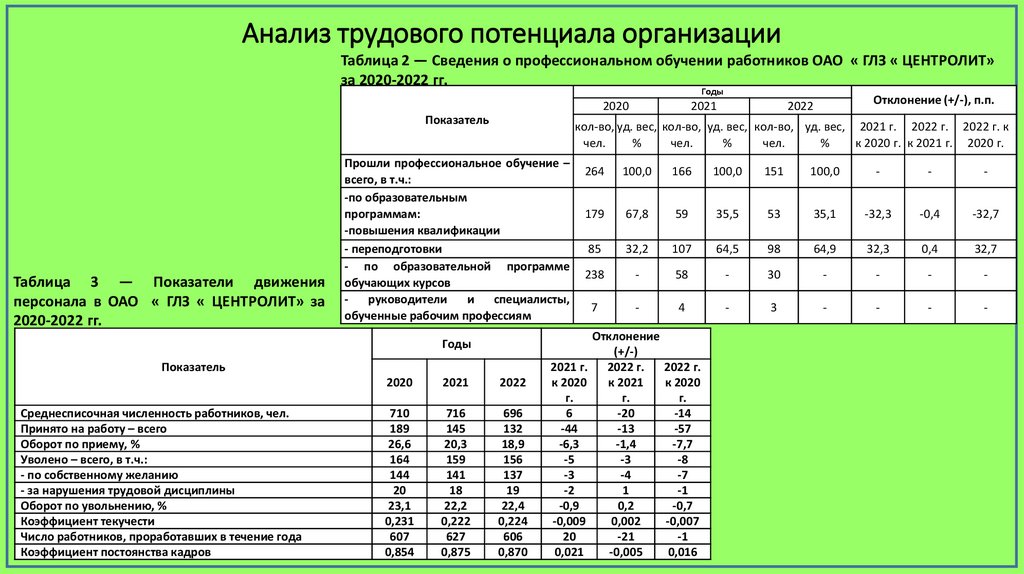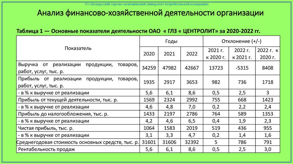 Таблица 1 — Основные показатели деятельности ОАО « ГЛЗ « ЦЕНТРОЛИТ» за 2020-2022 гг.