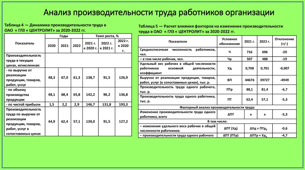 6) Дать оценку производительности труда в ОАО « ГЛЗ « ЦЕНТРОЛИТ»;
