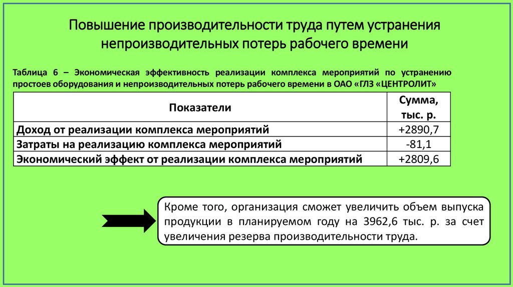 Повышение производительности труда путем устранениянепроизводительных потерь рабочего времени