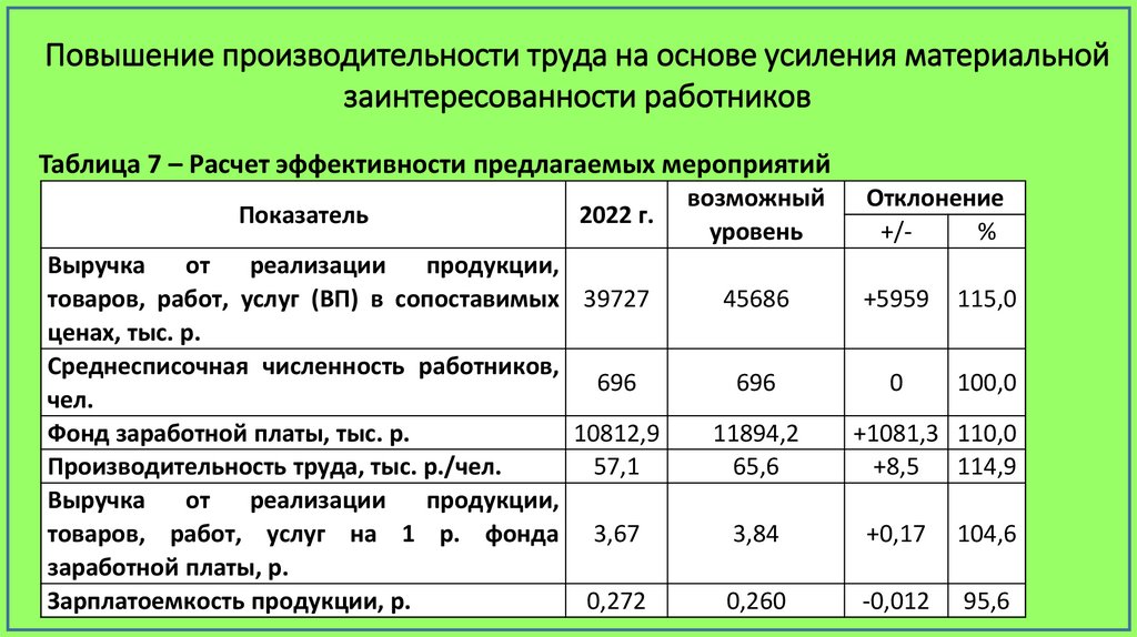 8) Обосновать повышение производительности труда в организации на основе усиления