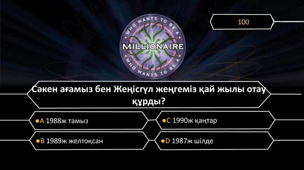 100Сәкен ағамыз бен Жеңісгүл жеңгеміз қай жылы отау
