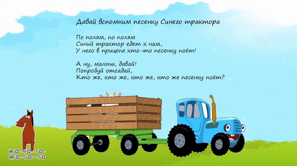 Давай вспомним песенку Синего трактораПо полям, по полям