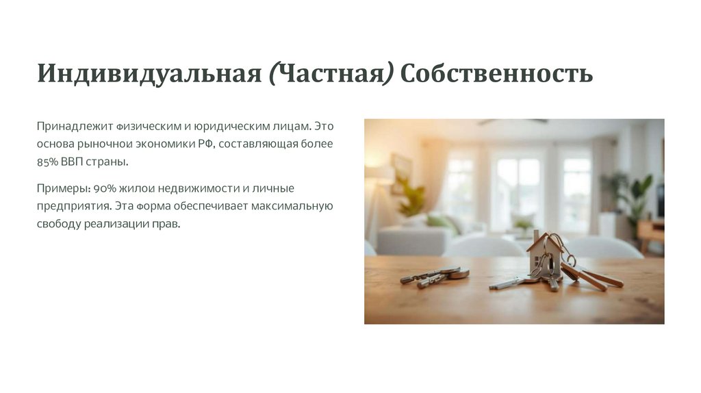 Индивидуальная (Частная) СобственностьПринадлежит физическим и юридическим лицам. Это