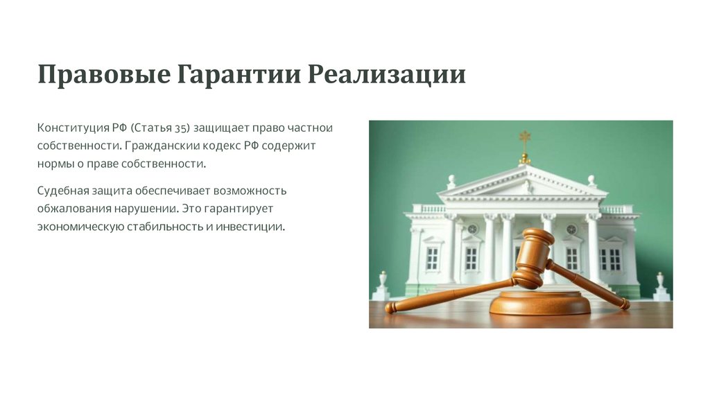 Правовые Гарантии РеализацииКонституция РФ (Статья 35) защищает право частной