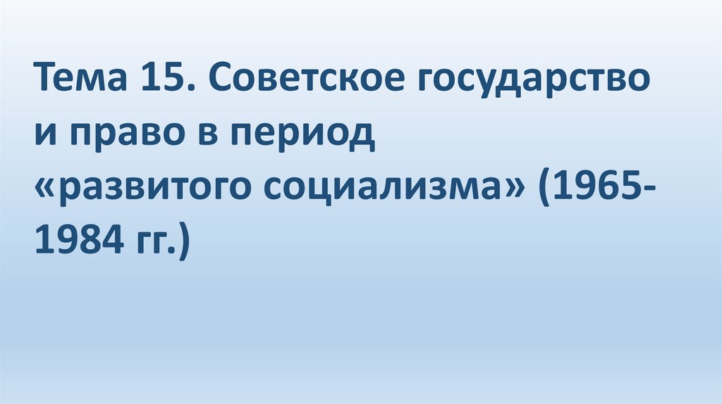 Тема 15. Советское государство и право в период «развитого социализма» (19651984 гг.)