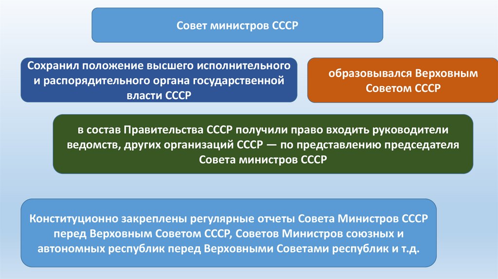 Совета министров СССР, имел право законодательной инициативы и мог вносить представления