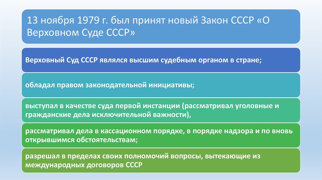 13 ноября 1979 г. был принят новый Закон СССР «ОВерховном Суде СССР»
