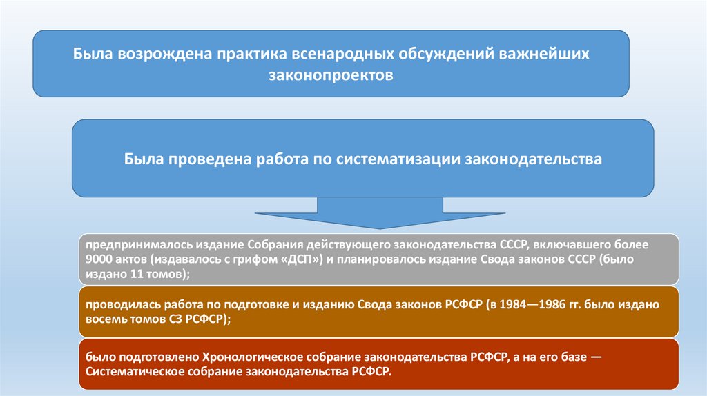 9000 актов (издавалось с грифом «ДСП») и планировалось издание Свода законов СССР (было