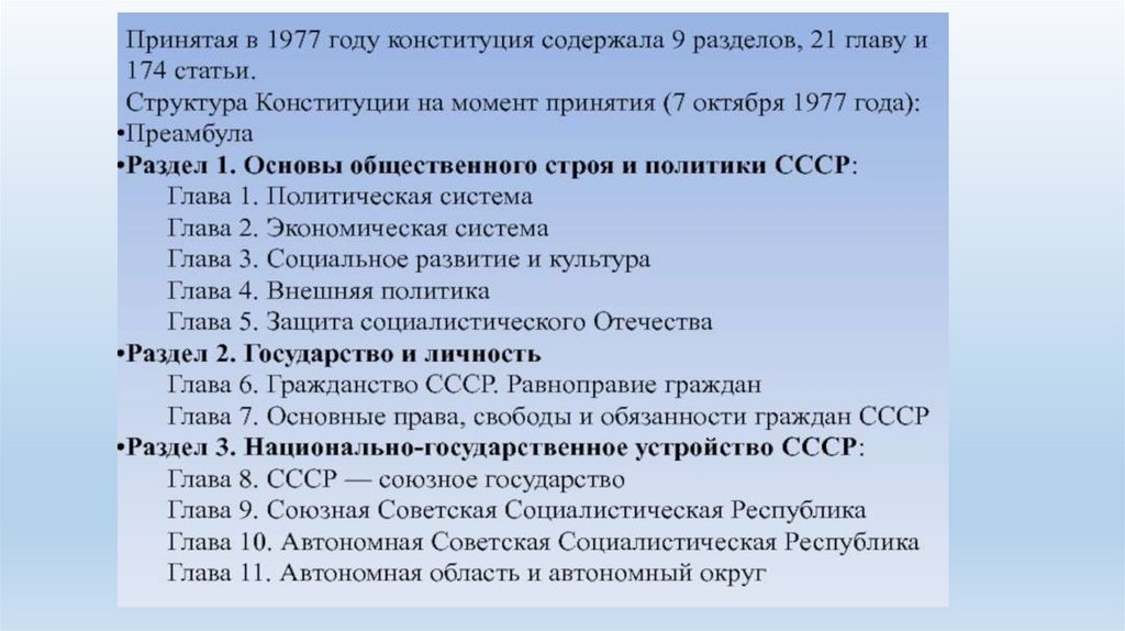 1 вопрос. Общая характеристика Конституции СССР 1977 г иКонституции РСФСР 1978 г.