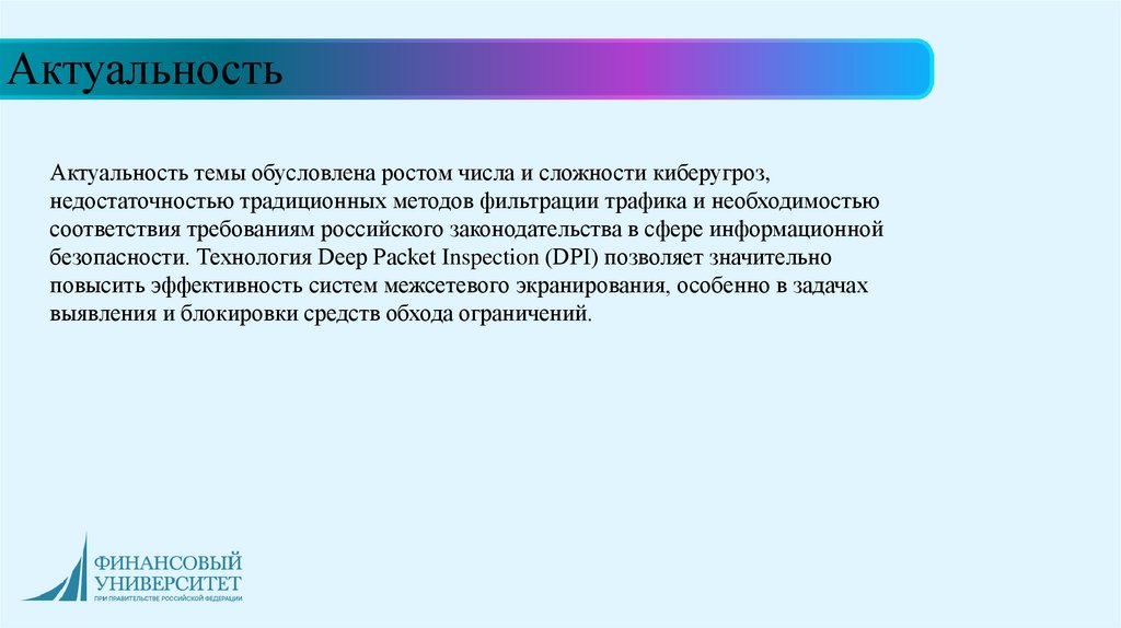 АктуальностьАктуальность темы обусловлена ростом числа и сложности киберугроз,
