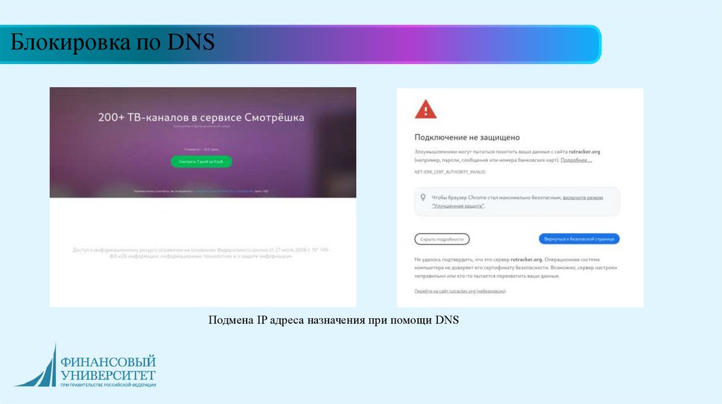 Блокировка по DNSПодмена IP адреса назначения при помощи DNS