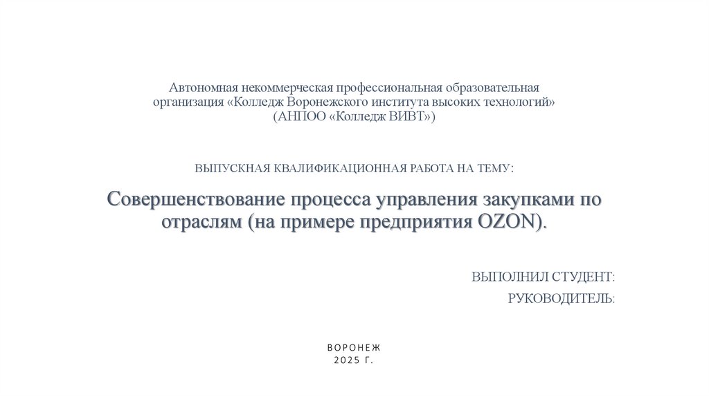 Совершенствование процесса управления закупками по отраслям (на примере предприятия OZON)
