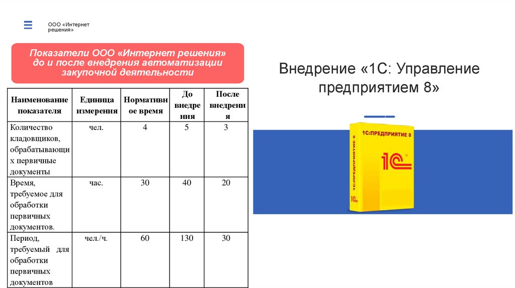 Внедрение системы KPIВнедрение «1С: Управление предприятием 8»