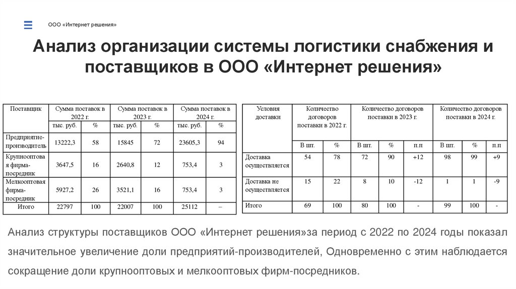 ООО «Интернет решения»Анализ организации системы логистики снабжения и