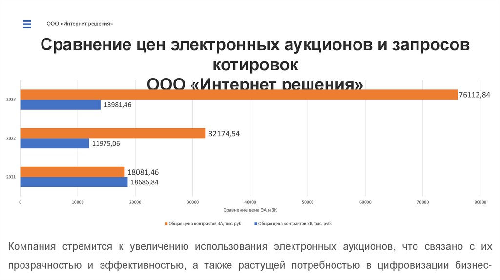 Компания стремится к увеличению использования электронных аукционов, что связано с их