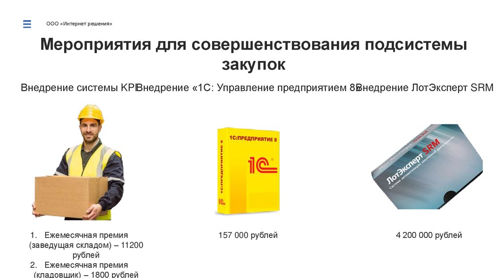 Для повышения эффективности закупок и управления складом вООО «Интернет решения» рекомендуется внедрить перечисленные