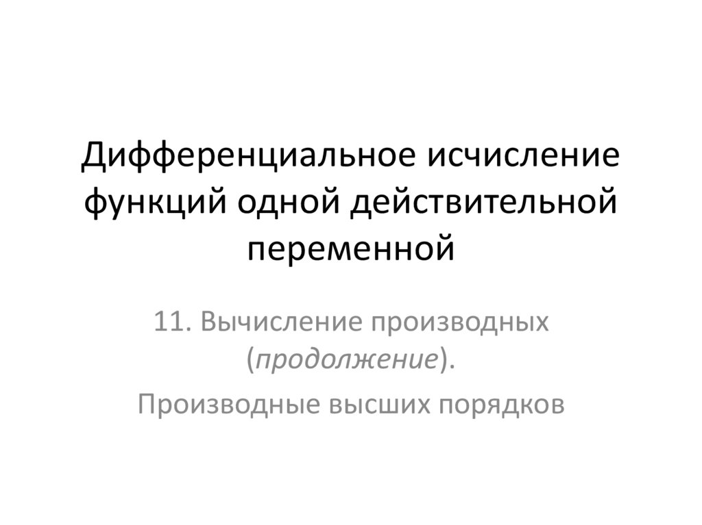 Дифференциальное исчисление функций одной действительной переменной 11. Вычисление производных (продолжение)