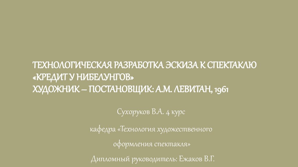 ТЕХНОЛОГИЧЕСКАЯ РАЗРАБОТКА ЭСКИЗА К СПЕКТАКЛЮ«КРЕДИТ У НИБЕЛУНГОВ»