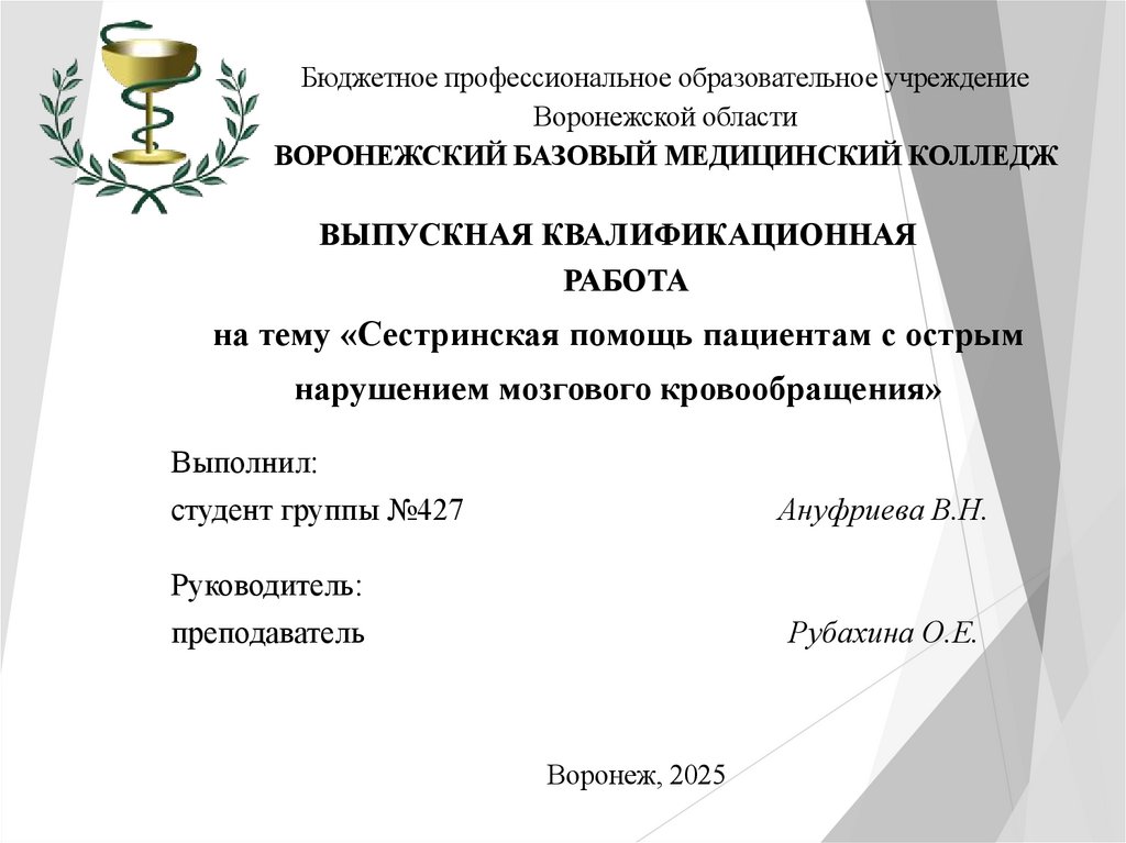 1. Бюджетное профессиональное образовательное учреждение Воронежской области ВОРОНЕЖСКИЙ БАЗОВЫЙ МЕДИЦИНСКИЙ КОЛЛЕДЖ