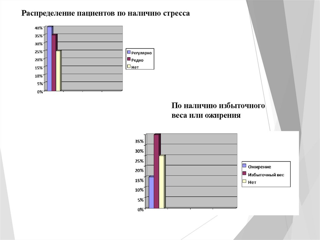 Распределение пациентов по наличию стрессаПо наличию избыточного