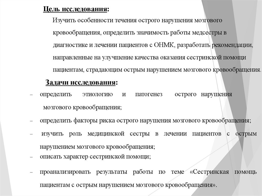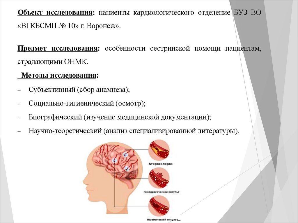 Цель исследования:Изучить особенности течения острого нарушения мозгового