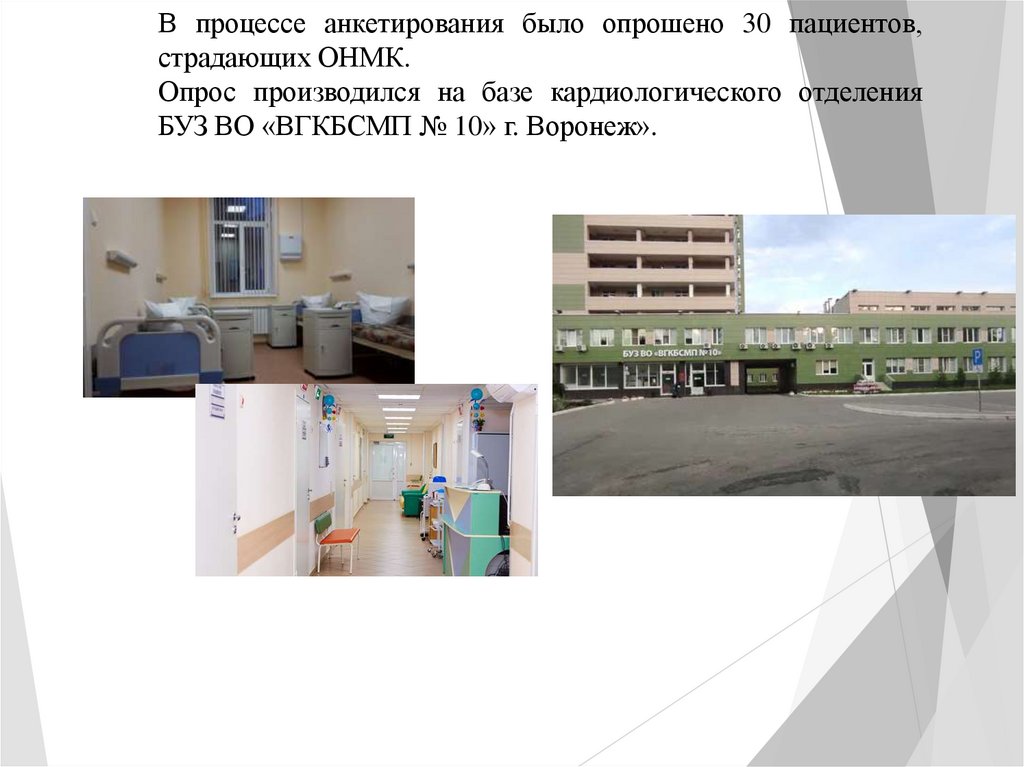Объект исследования: пациенты кардиологического отделение БУЗ ВО«ВГКБСМП № 10» г. Воронеж».