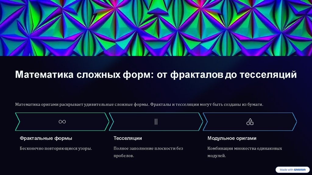 Математика сложных форм: от фракталов до тесселяцийМатематика оригами раскрывает удивительные сложные формы. Фракталы и тесселяции могут быть созданы из бумаги.