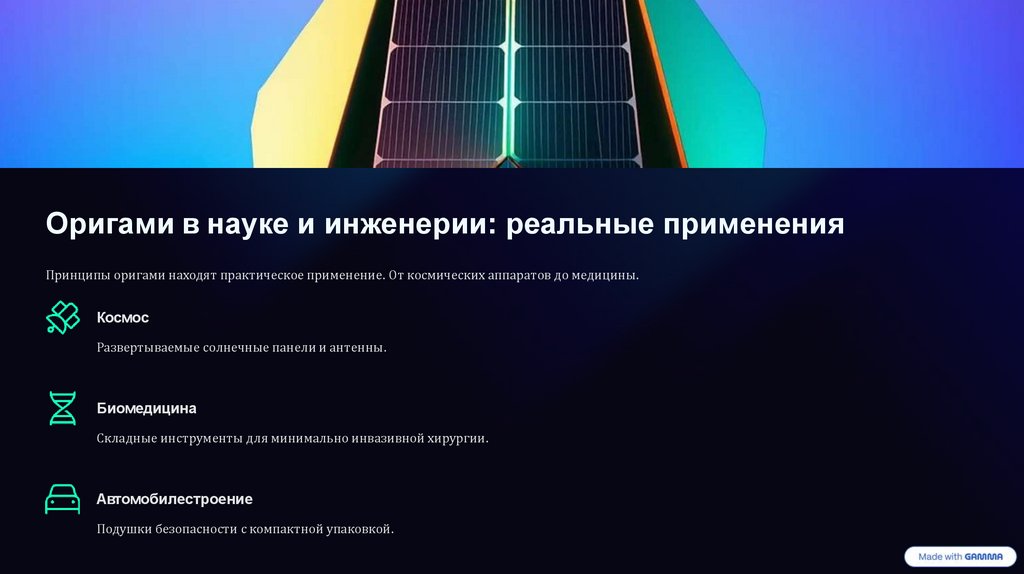 Оригами в науке и инженерии: реальные примененияПринципы оригами находят практическое применение. От космических аппаратов до медицины.