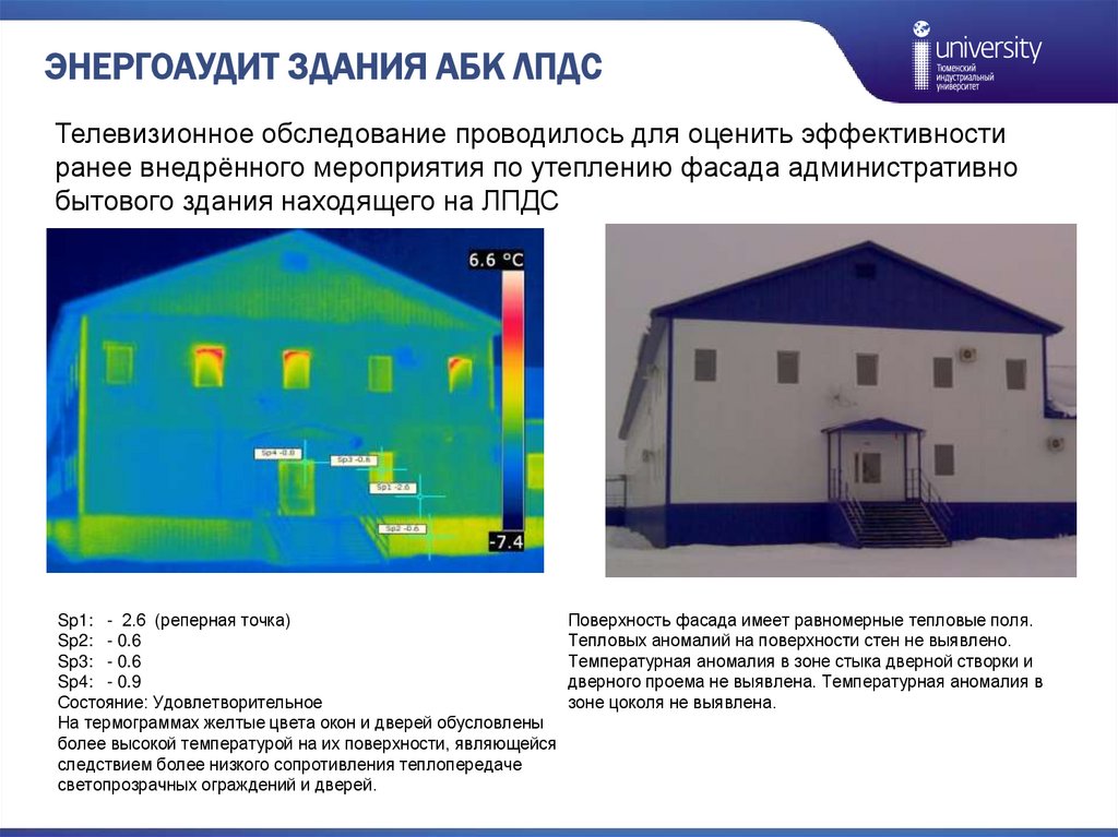 ЭНЕРГОАУДИТ ЗДАНИЯ АБК ЛПДСТелевизионное обследование проводилось для оценить эффективности