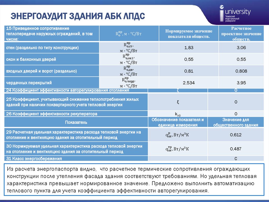 ЭНЕРГОАУДИТ ЗДАНИЯ АБК ЛПДСДля оценки класса