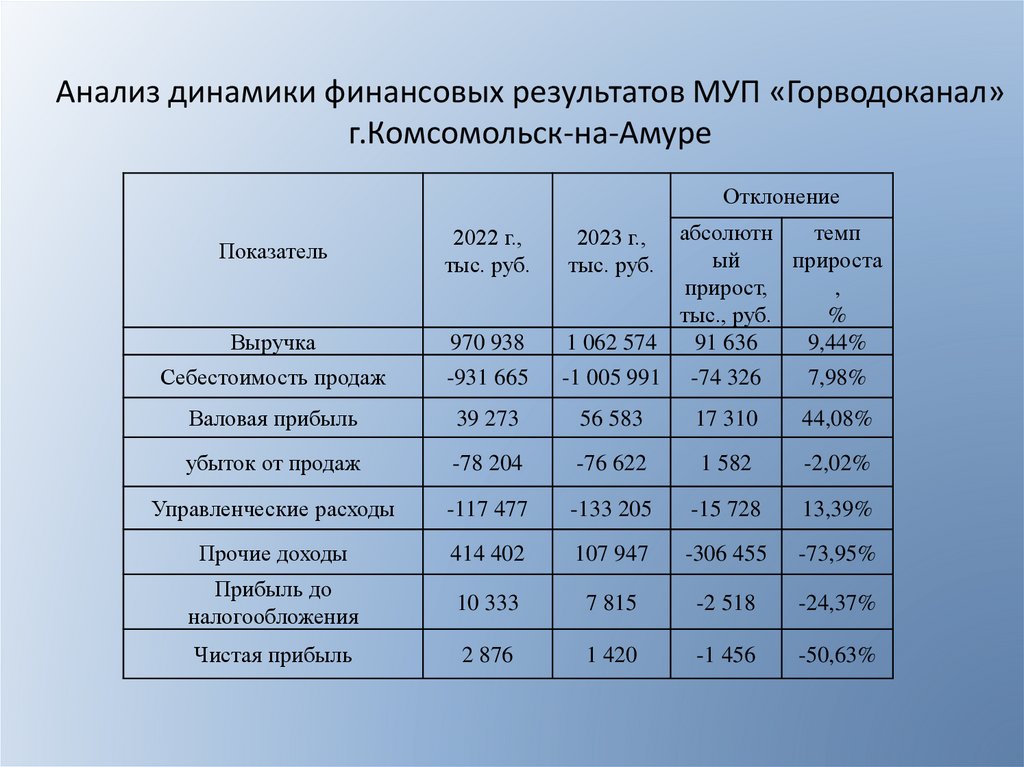 Анализ динамики финансовых результатов МУП «Горводоканал»г.Комсомольск-на-Амуре