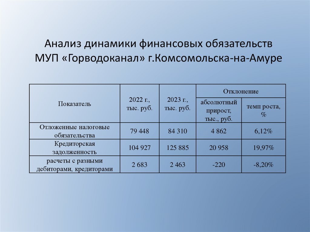 Анализ динамики финансовых обязательствМУП «Горводоканал» г.Комсомольска-на-Амуре