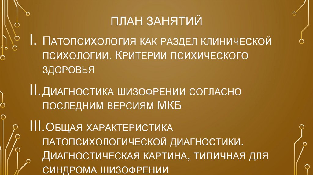 ПЛАН ЗАНЯТИЙI. ПАТОПСИХОЛОГИЯ КАК РАЗДЕЛ КЛИНИЧЕСКОЙ