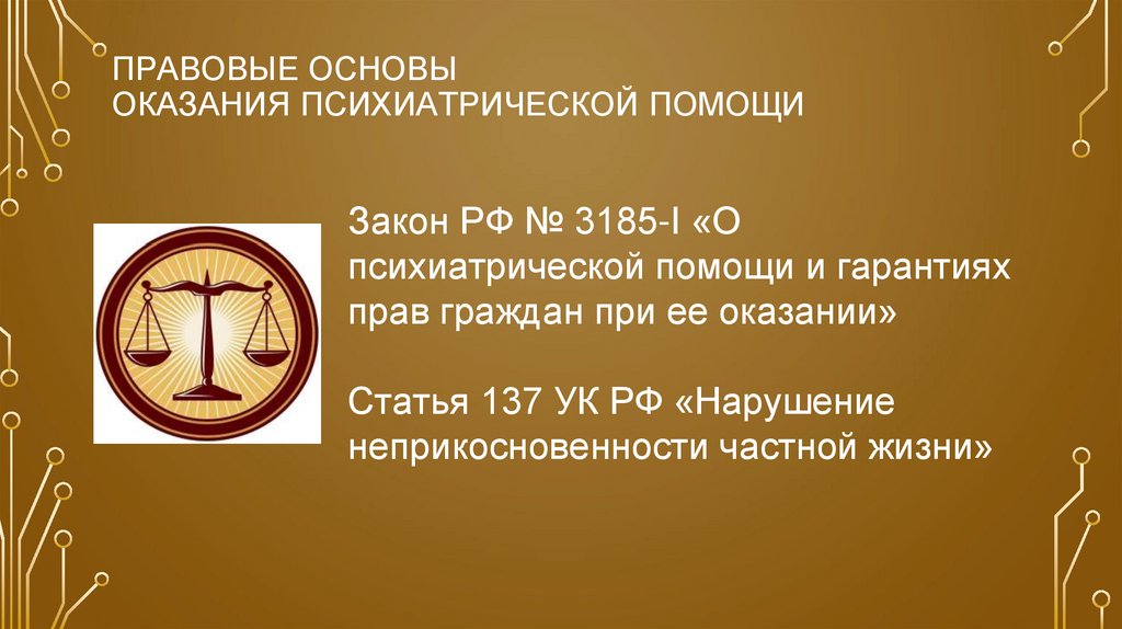 ПРАВОВЫЕ ОСНОВЫОКАЗАНИЯ ПСИХИАТРИЧЕСКОЙ ПОМОЩИ