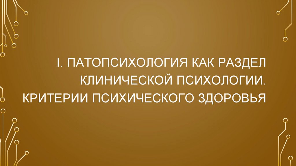 I. ПАТОПСИХОЛОГИЯ КАК РАЗДЕЛКЛИНИЧЕСКОЙ ПСИХОЛОГИИ.