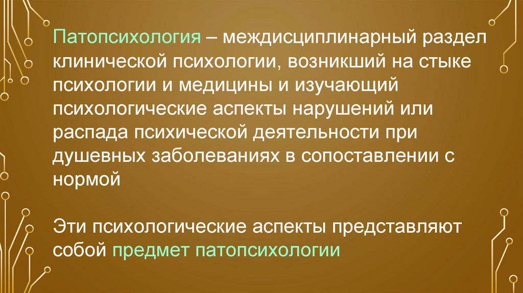 Патопсихология – междисциплинарный разделклинической психологии, возникший на стыке