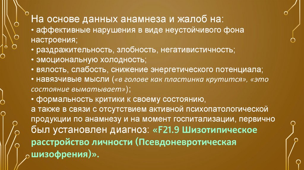 II. ДИАГНОСТИКА ШИЗОФРЕНИИ СОГЛАСНО