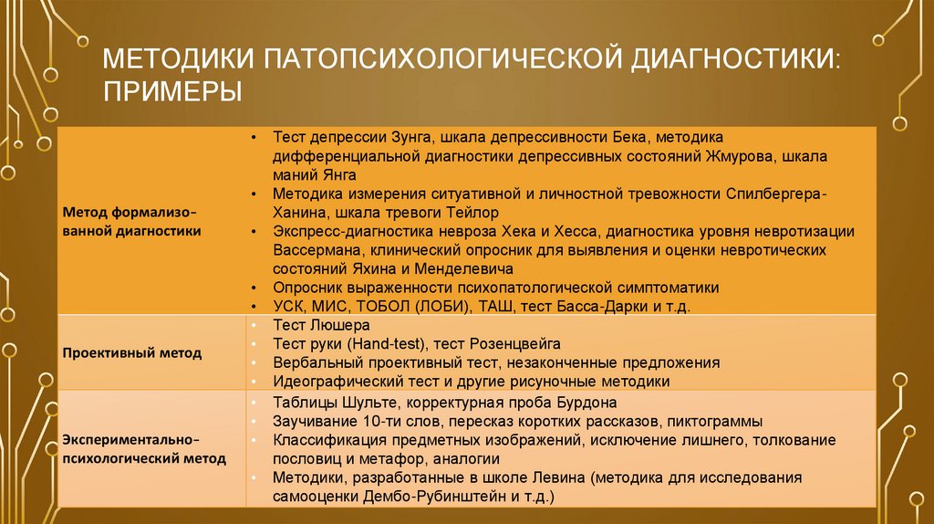 ПАТОПСИХОЛОГИЧЕСКОЙ ДИАГНОСТИКИ.